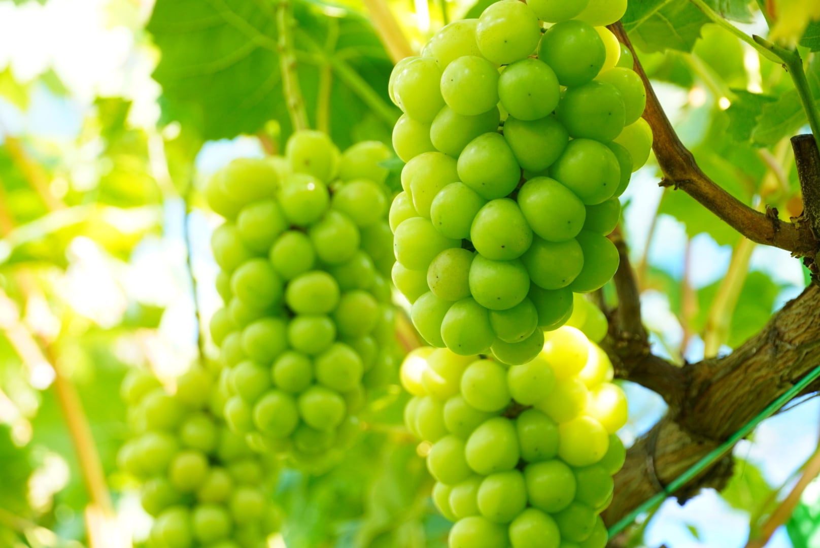 鮮やかな黄緑色の実でしまりのある肉質。酸味が少なく、ぶどうの中では特に甘い味わいの品種です。華やかで上品な香り、一口噛んだ瞬間に果汁溢れるシャインマスカットをお楽しいただけます。