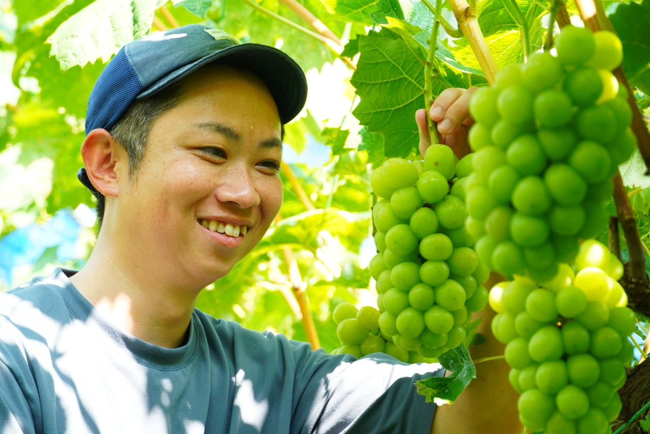 鮮やかな黄緑色の実でしまりのある肉質。酸味が少なく、ぶどうの中では特に甘い味わいの品種です。華やかで上品な香り、一口噛んだ瞬間に果汁溢れるシャインマスカットをお楽しいただけます。